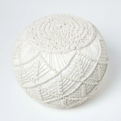 HOMESCAPES 35 cm Tall Natural Macrame Knitted Pouffe Been Filled Crochet Round Footstool 100% Cotton Braided Design x 40