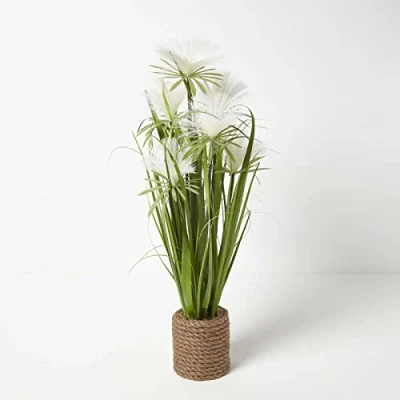 Artificial grass plant with open flowers in jute pot. Measuring approximately 74 cm tall. Colour: Green. Decorative and lifelike artificial plant that will add a touch of greenery to your home, bathroom or office. With long and large multiple real-touch green leaves. This faux artificial plant is crafted from a special UV protected silk-like polyester, ensuring that it looks and feels real and lifelike. On arrival, please take the time to style your plant to your desired look Carefully handcrafted by skilled experts, Homescapes' artificial plants look just like the real thing and there is no need for constant maintenance or watering. Homescapes are a leading manufacturer of artificial plants, trees and flowers for the home and office. Choose from a wide selection of faux plants and trees to add a tropical feel to your home.