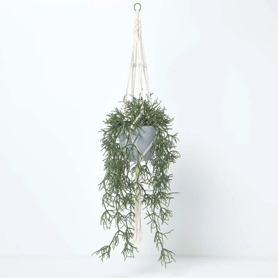 HOMESCAPES Artificial Hanging Basket 116 cm Long Faux Plant In Grey Melamine Pot Rhipsalis Trailing with Macramé Knotted Rope Style Hanger and Hook for Indoor Decoration