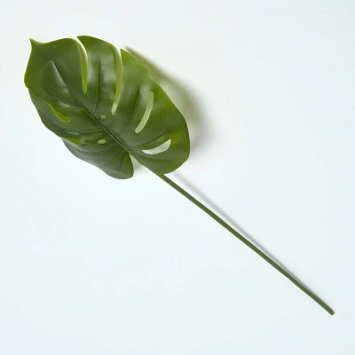 Brand: Homescapes Size: 70 x 19cm Colour: Green Material: Polypropylene, silk-like Polyester Plant Height: 70 x 19cm Care Instructions: Keep out of direct sunlight, dust with a soft cloth. Artificial Monstera Leaf by Homescapes. Vibrant and made to be botanically correct, this 70cm tall stem can be used as décor for bouquets, garlands and more. Artificial Tropical Leaves Made with realistic detail, these decorative Monstera leaves can be used for a variety of different occasions. Whether you're looking to make a tropical centrepiece or add something memorable to your wedding bouquet, these high quality Monstera leaves have been made to last and are perfect for reuse. Artificial Monstera Leaf With the Monstera Leaf measuring 25cm, the luxury long stem can be cut down to an appropriate length as needed. When on display, simply wipe your decorative tropical leaf with a soft cloth as needed, and keep out of direct sunlight where possible.