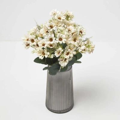 HOMESCAPES Artificial Wild Daisies Cream White Bouquet 46 cm, Realistic Natural Flowers
