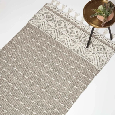 General description A neutral kilim rug, handwoven from cotton and wool with decorative fringe tassels, this beige and natural rug features a geometric edge pattern and is perfect for heavy footfall areas. Each strand has been hand-dyed to create a stylish on-trend rug that suits any part of the home. Finished with an off-white macrame-style raised detailing, this tapestry-style rug is both decorative and durable. Ideal for both modern and traditional settings, it can be paired with the Homescapes range of kilim cushions and macrame accessories for a complementary look. Technical specifications Brand: Homescapes Colour: Beige and Natural Size: 160 x 230 cm Material: 15% Cotton, 85% Wool Care Instructions: Spot Clean Only Other information Due to the nature of kilim rugs, all handwoven rugs will vary slightly, with no two rugs being the same.