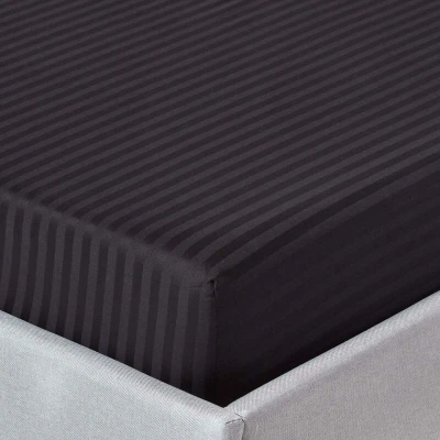 HOMESCAPES Black Deep Fitted Sheet (12) Small Double 330 TC 500 Thread Count Equivalent Satin Stripe Pure Egyptian Cotton Bed with Fully Elasticated Skirt