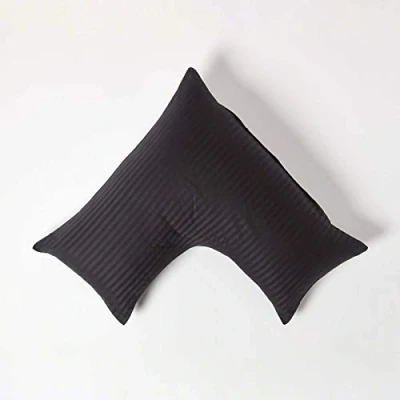 HOMESCAPES Black Pure Egyptian Cotton V Shape Pillowcase 330 TC 500 Thread Count Percale Equivalent Satin Stripe Pillow Case For Nursing Pregnancy and Elderly