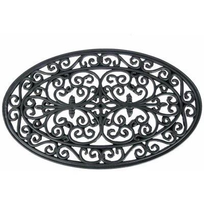 HOMESCAPES Black Wrought Iron Effect Oval Rubber Doormat, 70 x 44 cm