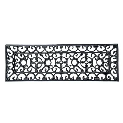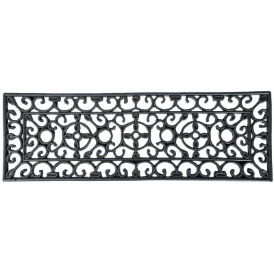 HOMESCAPES Black Wrought Iron Effect Rubber Doormat, 75 x 25 cm