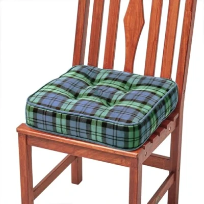ManoManoGeneral description This HOMESCAPES Black Watch Tartan Cotton Dining Chair Booster Cushion is designed to enhance comfort while sitting in dining or garden chairs. Following the success of the Homescapes armchair booster cushion, this product meets the high demand for added support and ease of use. Technical specifications Brand: Homescapes Size: 40 x 40 x 10 cm Colour: Green Cover Material: 100% Cotton Filling: 100% Polyester Care Instruction: Spot clean only Other information This booster cushion complements the coordinating booster footstool, which can also serve as a clever storage area for your living room essentials.