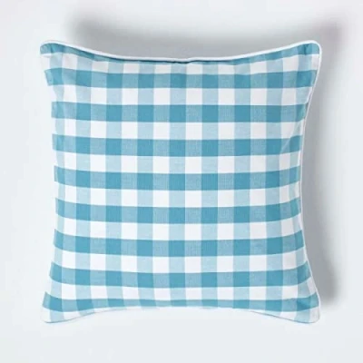 100% cotton cushion cover with 1" square block check pattern. Size: 45 x 45 cm (18" x 18"). Colour: blue. Very good quality 100% cotton fabric cushion cover for a lasting comfort. Easy care, washable at home. Manufactured by Homescapes to look good and last for a long time. Available in square and rectangular shapes and in three sizes, also coordinates with a large variety of cushions, throws and curtains in the Homescapes collection. Homescapes also has a very large selection of complimenting products and fabrics which can be bought by meter to make your own soft furnishings.