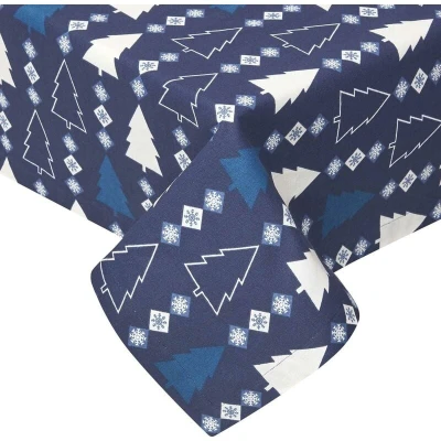 HOMESCAPES Blue Christmas Tablecloth 100% Cotton 6 8 Seater Table Cloth 137 x 229 cm Rectangular “Blue Winterland Xmas Tree Pattern