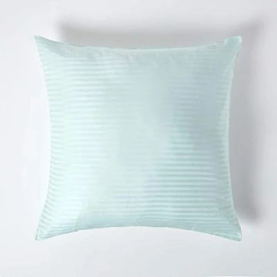 HOMESCAPES Blue Pure Egyptian Cotton Euro Size Pillowcase Square (80 x 80 cm) Pack of 1 330 TC 500 Thread Count Percale Equivalent Satin Stripe Pillow Case with Zip