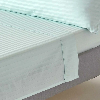HOMESCAPES Blue Pure Egyptian Cotton Flat Sheet Single 330 TC 500 Thread Count Equivalent Satin Stripe Bed