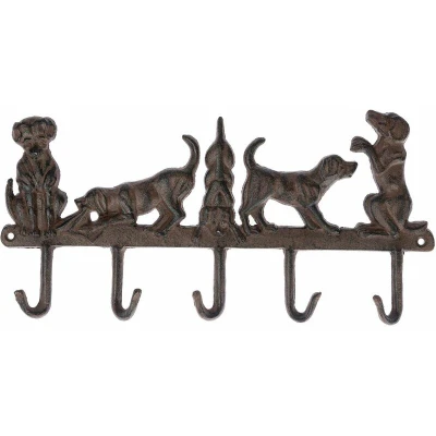 HOMESCAPES Brown Cast Iron Garden Hook Rack with Dog Decoration Suitable for Indoor and Outdoor Use