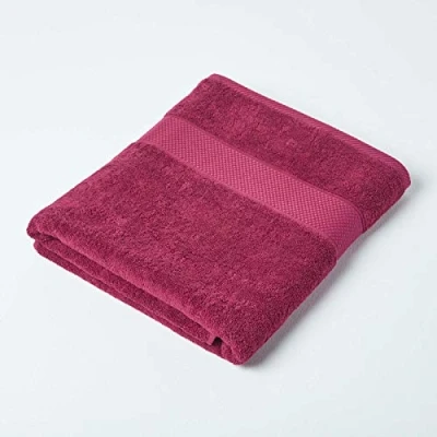 Bath Sheet Size: 100 x 150 cm. Colour: Burgundy. A quality towel for everyday use in a heavy 500 GSM weight from Homescapes in 23 different colours. Six sizes are available in each colour. 100% finely combed cotton fibres ring spun and woven in Turkey. Towels from Turkey are known for the luxury they bring to every bathing experience. Retains its softness after wash due to higher quality of cotton fibre used in manufacturing. Washable at 40°C. For the best care of your towel, Homescapes recommends not to use fabric conditioner/softener whilst washing, and not to iron your towels as both reduce absorbency.