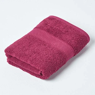 Hand Towel Size: 50 x 90 cm. Colour: Burgundy. A quality towel for everyday use in a heavy 500 GSM weight from Homescapes in 23 different colours. Six sizes are available in each colour. 100% finely combed cotton fibres ring spun and woven in Turkey. Towels from Turkey are known for the luxury they bring to every bathing experience. Retains its softness after wash due to higher quality of cotton fibre used in manufacturing. Washable at 40°C. For the best care of your towel, Homescapes recommends not to use fabric conditioner/softener whilst washing, and not to iron your towels as both reduce absorbency.