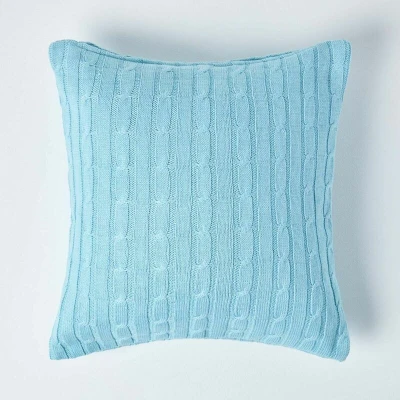 HOMESCAPES Cable Knit Cushion Cover Pastel Blue 100% Cotton 18 x Inches Washable