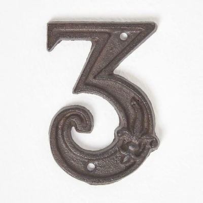 General description HOMESCAPES Cast Iron House number, 3, is a beautifully handcrafted piece that combines functionality with decorative appeal. Made from high-quality cast iron, this house number is part of an exclusive collection of colorful and functional garden ornaments and accessories, designed to enhance the aesthetic of your outdoor spaces. Technical specifications Brand: Homescapes Size: W 8 x H 11.8 cm Colour: Brown Material: Cast Iron Other information Handcrafted and expertly painted for durability and style. Part of a vast collection that includes various garden ornaments and accessories.