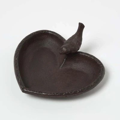 Specifications: Brand: Homescapes Size: 18 x 18 x 4 cm Colour: Brown Material: Cast Iron Add a touch of vintage chic to your garden with this heart shaped bird bath. With a cute little bird perching on the edge of the bowl, this sturdy cast iron bath would be the perfect outdoor accessory to entice birds into your garden. Made from sturdy cast iron, the dish is 3cm deep. Requires some minor assembly. Package size: L18cm x W18cm x H4cm. Weight: 1.17kg. (All measurements and weights are approximate).