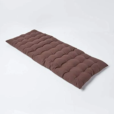LUXURY BENCH CUSHION: Get comfortable with our expertly handmade 100% cotton garden bench cushion for outdoor or indoor use — Britain's premium bench seat cushion, loved by millions for 20+ years. Included: 1 x Chocolate Brown 2 seater bench cushion (108 x 42 x 5 cm) ULTIMATE COMFORT: Generously filled with our specialist down-like Super Microfibre, your outdoor bench cushion is expertly engineered for perfect bounce-back and even padding that lasts. Versatile as a seat pad, back support or dining bench cushion. GENTLE TO SKIN & FUR: Certified kind to skin and planet, your hypoallergenic garden bench cushions 2 seater are anti-allergy, making them perfect for your pets, children or those with sensitive skin. Our luxury cotton is breathable and anti-dust mite, for all-year comfort. MACHINE WASHABLE: at 40C. Stylish as outdoor patio bench cushions, these luxury seat pads are also ideal as floor cushions, pet beds, for indoor seating or on loungers. Create a comfortable place to relax anywhere in your home and garden. Store indoors when not in use. STYLISH COORDINATING RANGES: Discover Homescapes' exclusive, must-have 100% cotton sets: from booster cushions to table linen and curtains. For 25+ years, Homescapes has offered uniquely affordable luxury, because our artisans create each lovely piece, with no middlemen.