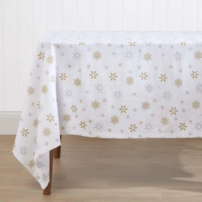 HOMESCAPES Christmas Tablecloth Gold Snowflake x Mas design 100% Cotton White and Colour Washable at Home (137 178 cm)