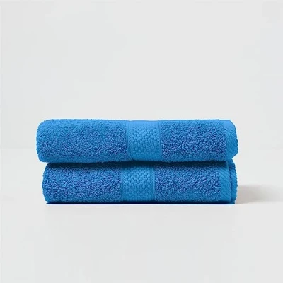 Set of 2 Hand Towels Size: 50 x 90 cm. Colour: Cobalt Blue. A quality towel for everyday use in a heavy 500 GSM weight from Homescapes in 23 different colours. Six sizes are available in each colour. 100% finely combed cotton fibres ring spun and woven in Turkey. Towels from Turkey are known for the luxury they bring to every bathing experience. Retains its softness after wash due to higher quality of cotton fibre used in manufacturing. Washable at 40°C. For the best care of your towel, Homescapes recommends not to use fabric conditioner/softener whilst washing, and not to iron your towels as both reduce absorbency.