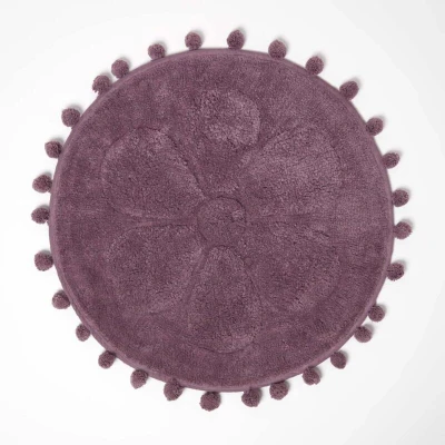 ManoManoSpecifications : Brand : Homescapes Size : 60cm Round Material : 100% Cotton Care Instructions : Machine washable up to 30 degrees Cotton bath mat with tufted flower design. Round anti slip bath mat with a modern pom pom edge in white. Floral Bath Mat Part of the tufted bath mat range, this indulgent cotton bath mat is both absorbent and non-slip. Woven from pure 100% cotton, this bathroom mat is ideal as a statement piece which has been crafted with intricate detail. This luxury tufted bath mat offers a soft landing for bare feet after a shower or bath, while serving as a captivating piece of decor. Great for infusing personality into your bathroom, this 60 cm round bath mat is finished with a pom pom edge for an eye-catching look. Absorbent Bath Mat Available in one size and three colours, this round bath mat brings comfort to your bathroom space and can be used alongside the sink, tub or shower. Pair with the Homescapes bathroom plants for a decorative feel throughout the space.