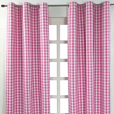 ManoManoGeneral description These HOMESCAPES Cotton Pink Block Check Gingham Eyelet Curtains are crafted from 100% yarn dyed cotton woven fabric, offering a rich appearance compared to printed alternatives. Designed in a contemporary ring top or eyelet style, they are suitable for all rooms, including children's rooms. The curtains are surprisingly affordable as Homescapes weaves the fabrics themselves before sewing the curtains. Technical specifications Brand: Homescapes Size: Width 117 cm (46") x Drop 137 cm (54") Colour: Pink Material: 100% yarn dyed cotton woven fabric Care Instructions Dry clean only Cool iron on reverse Other information Pack Includes: One pair of curtains Coordinating cushions, floor cushions, and fabric by the meter are also available from Homescapes for custom soft furnishings. The curtains are not lined; to achieve light-proofing, they should be used in conjunction with a blackout curtain.