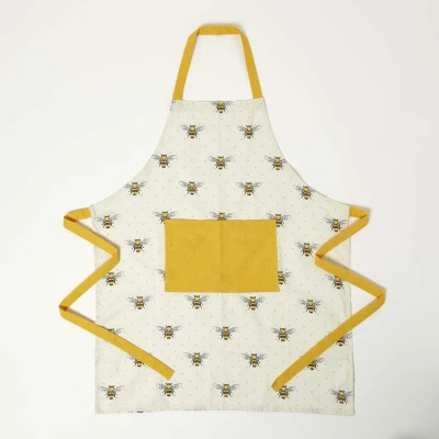 Yellow and white honey bee apron. 100% cotton adult size apron front pocket. Machine washable. Size: 70 x 85cm. Colour: Yellow. A colourful white and yellow bee print apron that will add a splash of colour to your kitchen. This apron is woven from 100% cotton which is yarn dyed (not printed) to ensure lasing colour, a super soft and durable material that will not fade with use. Protecting your clothes from spills and stains whilst cooking, this multi coloured apron features an extra-long waist tie and is the perfect gift for any keen chef or baker. Part of Homescapes kitchen linens collection, co-ordinating tea towels and accessories available in matching bee design. A British brand established in the year 2000, Homescapes are a leading manufacturer of quality home accessories, furniture and bedding.