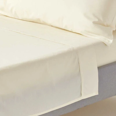 HOMESCAPES Cream Pure Egyptian Cotton Flat Sheet Single 200 TC 400 Thread Count Equivalent Bed