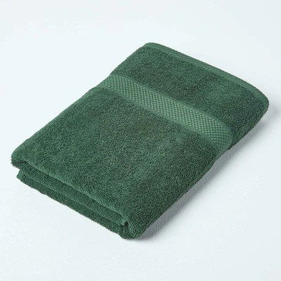 HOMESCAPES Dark Green Turkish Cotton Bath Towel Super Soft Thick & Absorbent 500 GSM Heavy Weight for everyday Luxury