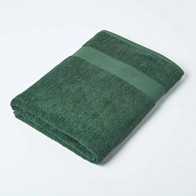 Jumbo Towel Size: 100 x 180 cm. Colour: Dark green. A quality towel for everyday use in a heavy 500 GSM weight from Homescapes in 23 different colours. Six sizes are available in each colour. 100% finely combed cotton fibres ring spun and woven in Turkey. Towels from Turkey are known for the luxury they bring to every bathing experience. Retains its softness after wash due to higher quality of cotton fibre used in manufacturing. Washable at 40°C. For the best care of your towel, Homescapes recommends not to use fabric conditioner/softener whilst washing, and not to iron your towels as both reduce absorbency.