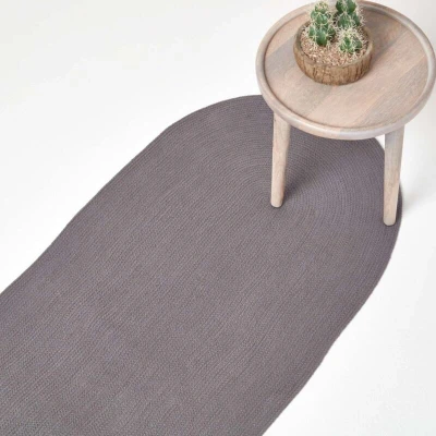 ManoManoGeneral description This Homescapes Grey Handmade Woven Braided Oval Hallway Rug combines style and functionality. Handwoven from a cotton-rich blend, this rug features a thick textured design that adds a retro touch to any room. It is available in various sizes, including a hallway runner and a round shape, making it versatile for different spaces in your home. Technical specifications Brand: Homescapes Size: 66 x 200 cm (26" x 79") Colour: Grey Material: 95% Cotton, 5% Polyester Pattern: Plain Care Instructions Spot clean only Usage Ideal for high footfall areas such as living rooms, hallways, or bedrooms. Other information Also available in several other colours including mustard yellow and navy.