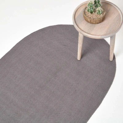 HOMESCAPES Dark Grey Handmade Braided Oval Rug For Bedroom & Living Room Reversible Woven Cotton Rug, 90 x 150 cm