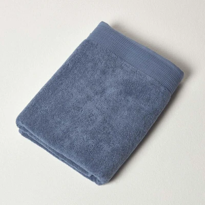 HOMESCAPES Denim Blue Bath Towel 700 GSM Combed 100% Egyptian Cotton 70 x 130 cm