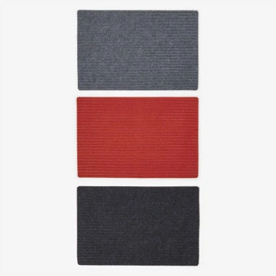 HOMESCAPES Door Mats Set of 3, Stylish Ribbed Design, 40x60cm, Indoor Use, Red Black Grey, Durable, Dirt Trapper