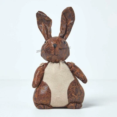 AmazonHomescapes heavy weight Rabbit door stop. Faux Leather with distressed finish. Material: Faux Leather. Filled with sand Measures approx. H 24 cm x W 12 cm x D 9 cm (9.5 x 5 x 3.5”) Ideal for preventing doors and windows from slamming shut, this adorable door stop will add some character to your home. Part of Homescapes' collection of home and garden accessories, bird tables, fire pits, door stoppers, door mats, outdoor rugs and door knockers also available.