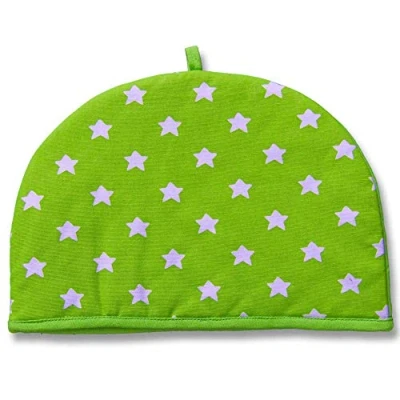 HOMESCAPES Double Design Tea Cosy Stars Green Muff Teapot Warmer 100% Cotton
