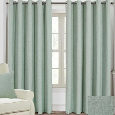 AmazonTop Quality Heavy Linen Rich Lined Eyelet Curtains Pair. Colour: Duck Egg Blue. ASK HOMESCAPES FOR FREE SWATCHES TO APPRECIATE THE QUALITY OF FABRIC. Fully lined ready-made curtain with eyelet ring heading suitable for most curtain rails. Eyelet inner diameter: 4 cm approx. These curtains are designed to add a modern touch and subtle elegance to your home. They perfectly complement contemporary interiors but fit equally well in classic room concepts. Exclusive woven and textured fabric providing a sophisticated look and beautiful even drape to your curtains in a selection of contemporary colours. Homescapes linen look curtains are available in duck egg blue and cream (ivory) colours and 9 sizes. Matching cushion covers and tie back are sold separately.