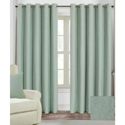 HOMESCAPES Duck Egg Blue Luxury Linen Curtains Pair 228cm (90") Wide x 182cm (72") Drop. Modern Ring Top Eyelet Fully Lined Curtains. FREE SWATCHES