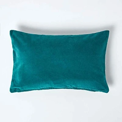 Luxury velvet cushion cover, super soft 100% cotton velvet with hidden zip closure. Size: 30 x 50 cm. Colour: Emerald Teal Green. Naturally soft, this 100% cotton velvet cushion cover will introduce a vibrant emerald green tone into your home, staying true to colour for years to come. Expertly woven by skilled artisans, the luxurious quality is incomparable to any other. Adding a plush, on-trend look to your home interiors, this velvet cushion cover will compliment modern and traditional styles and is perfect for styling in your living room or bedroom. Ideal for layering up on your sofa, bed or armchair, mix and match colours to create the perfect look. Easy to care for, it is machine washable at 40 degrees, wash with similar colours. Part of the exclusive range of luxury velvet home accessories, this velvet cushion cover is available in a choice of contemporary colours including burnt orange, red, pink, emerald green, mustard, dark grey, light grey and slate blue. Matching round cushions and throws are also available. Feather and microfibre cushion inserts sold separately and also available from Homescapes. The perfect place for all your homeware needs, Homescapes were established in the year 2000 and offer an exclusive collection of co-ordinating soft furnishings that will help you to add those finishing touches to transform your home.