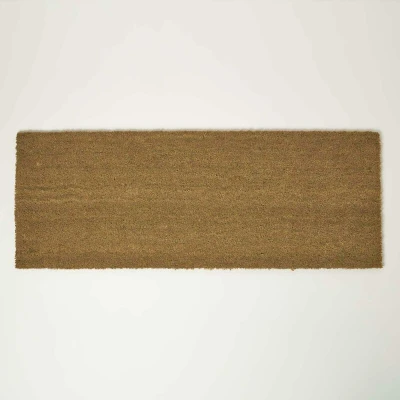 AmazonPlain coir extra-long runner doormat. Double doormat with non-slip rubber backing. Colour: Brown. Measures: 120 x 45 cm. A thick coir doormat with anti-slip rubber backing, designed for outside use, this heavy-duty door mat will help remove mud and dirt from shoes with ease. An extra-long double door mat ideal for passageways, outside patio doors and large areas, this double doormat has been expertly crafted and designed to last. A durable door mat that will keep mud and dirt out of your home, keeping your carpets and floor clean. To care for your doormat, it is recommended that you shake and brush off dirt regularly. Part of Homescapes’ extensive collection of home and garden accessories, bird tables, fire pits, door stoppers, outdoor rugs and floor cushions are available in a range of styles.