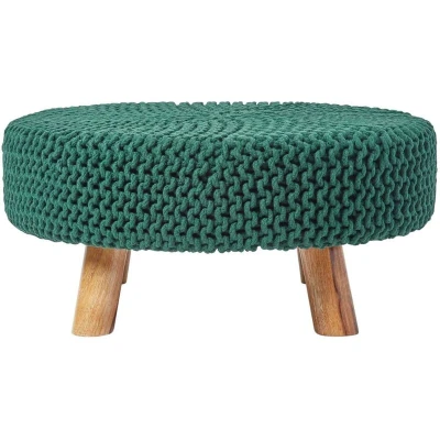 HOMESCAPES Forest Green Knitted Pouffe Footstool Occasional Seat 100% Cotton for Living Room Children or the Elderly