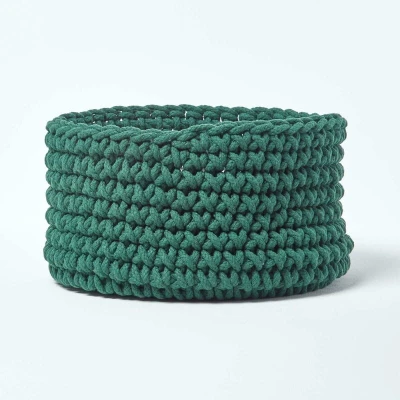General description Versatile and practical, the HOMESCAPES Forest Green Cotton Knitted Round Storage Basket is handwoven from chunky knit 100% cotton. This stylish storage solution is perfect for organizing small items, toys, and remote controls throughout your home, making it an ideal addition to living rooms and playrooms. Technical specifications Brand: Homescapes Size: W37 x H21 cm (approx.) Material: 100% Cotton Care Instructions Wipe clean only Other information Available in medium and large sizes Part of the knitted soft furnishings collection, including knitted pouffes and footstools Eco-friendly alternative to plastic storage solutions