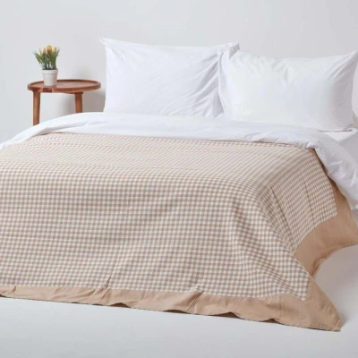 HOMESCAPES Gingham Check Throw/Bedspread 150 x 200 cm (59 79 Inches) Beige and White Handmade 100% Cotton Suitable for most 1 Seater Sofas Single Beds Easy care washable at home