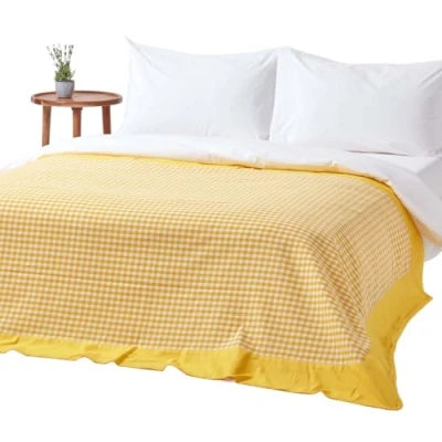 HOMESCAPES Gingham Check Throw/Bedspread 150 x 200 cm (59 79 Inches) Yellow and White Handmade 100% Cotton Suitable for most 1 Seater Sofas Single Beds Easy care washable at home