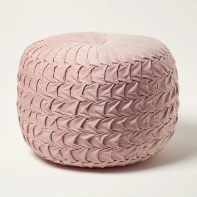 HOMESCAPES Grace Pleated Velvet Pink Pouffe