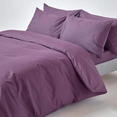 100% Egyptian Cotton, British bedding in standard British sizes and specifications, Single Size, 135 x 200 cm (54 x 79″) duvet cover with one standard housewife pillow case. Hand sewn buttons and button eyelet holes with a fabric storage bag. Colour: Grape. Crisp and fresh cotton percale bed linen woven with finely combed pure Egyptian cotton fibres. Woven with 200 thread single ply yarn in a square inch which is equivalent to 400 thread count twisted yarns to create much softer, crisper and longer lasting fabric. Hypoallergenic, washable at 40 degree C and no bobbling or pilling. Becomes even softer with each wash and lasts longer than most available bed linen. Exclusively crafted by skilled artisans, this range of pure cotton fabric is available in a large selection of co-ordinating fitted sheets, flat sheets, housewife, oxford, V shaped, king size and body pillow cases. Over 14 colours to choose from. British brand, Homescapes, well respected for their top-quality Homeware, duvets, pillows and uncompromising service since the year 2000.