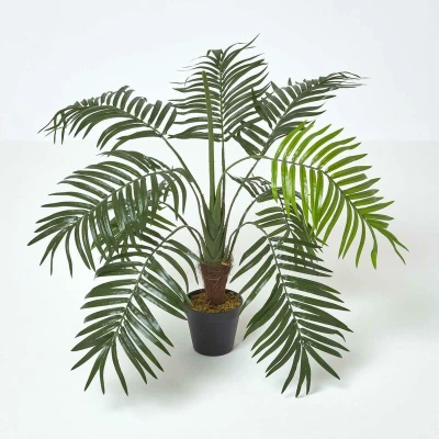 Amazon70 cm synthetic Mini Palm Plant, ideal for adding some hassle-free greenery to your home or office. Supplied in a simple, black plant pot Total height: 70 cm. Total width: 60 cm. Pot dimensions: Height 12.5 cm, diameter 12.5 cm - Please note that all measurements are approximate A low-maintenance alternative to living houseplants, this plant ornament is made from durable synthetic materials so you can enjoy it for years to come. Features a faux moss base, a husk-covered trunk and 9 fronds of long, thin leaves for a true-to-life appearance To achieve a stylish and realistic look, we recommend that you place this plant into an ornamental planter of your choice and that you bend the fronds out from the base slightly UV Resistant - Can be placed anywhere indoors and will retain its colour for a long time. Not suitable for outdoor use. Wipe clean with a damp cloth. Also available in 100 cm and 120 cm variations (sold separately)