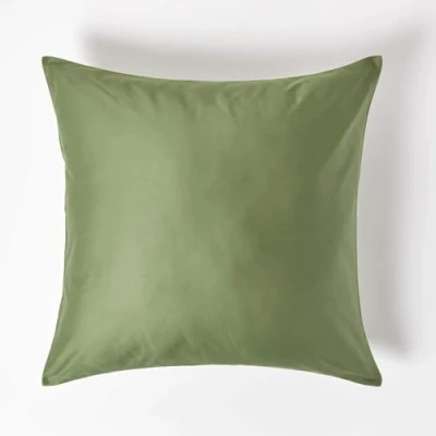 100% pure organic cotton, British bedding in Euro sizes and specifications, square Continental housewife pillowcase 80 x 80 cm (32 x 32″) pack of 2 with zip closure. Colour: Moss Green. Crisp and fresh cotton bed linen woven with finely combed pure organic cotton fibres. Woven in a satin weave for a smooth and glossy finish with 400 thread single ply yarn in a square inch, equivalent to 600 thread count twisted yarns to create much softer, crisper and longer lasting fabric. The weave has been coloured with organic dyes that are GOTs certified. Hypoallergenic, washable at 40 degree C and no bobbling or pilling. Becomes even softer with each wash and lasts longer than most available bed linen. Exclusively crafted by skilled artisans, this range of pure organic cotton fabric is available in a large selection of co-ordinating fitted sheets, duvet cover sets, housewife, oxford and V shaped pillow cases. Five colours to choose from. British brand, Homescapes, well respected for their top-quality Homeware, duvets, pillows and uncompromising service since the year 2000.