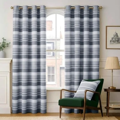 Amazon1 pair of cotton curtains made to match the Homescapes cotton throw range. Care instructions: Do not wash. Dry clean only. Iron on reverse Designed by Homescapes, hand woven on traditional handlooms in India using hand spun yarns. Very environment friendly with minimum use of electric in their manufacturing. Coordinating throws are available in three sizes, 60x80, 90x100 and 100x140 inches. Also available are coordinating cushions (filled) in the same fabric as these Curtains. This Homescapes range of throws, curtains and cushions is available in six solid colours (Natural, chocolate, beige, black , blue and teal) and five graduating stripe combinations (Blue, Green, Terracotta, pink and beige).