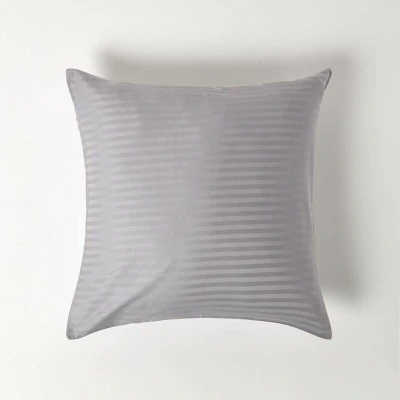 HOMESCAPES Grey Pure Egyptian Cotton Euro Size Pillowcase 60 x cm 330 TC 500 Thread Count Percale Equivalent Satin Stripe Pillow Case with Zip